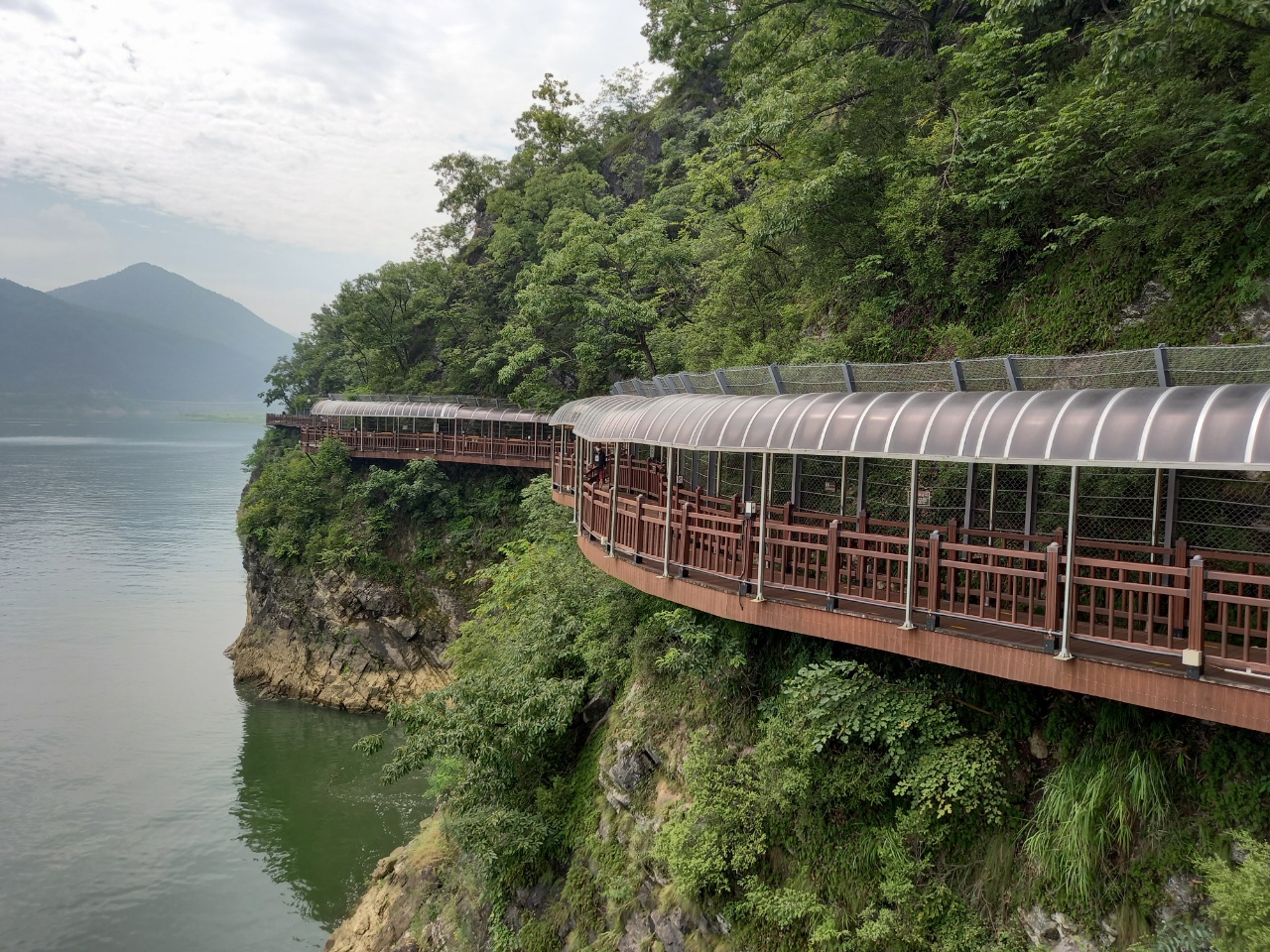 굽이굽이 데크길이 멋지게 펼쳐져 있는 단양강잔도-